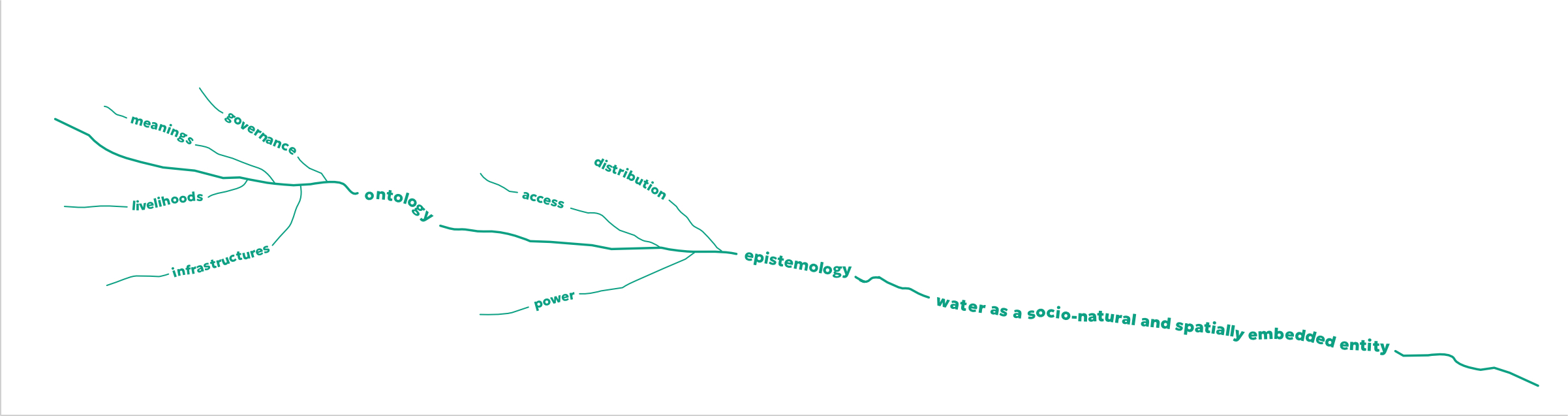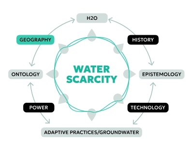 The epistemology of water asks how we know water, and these ways of knowing also shape the understandings of “scarcity”. When scarcity is defined primarily by volumetric measures (e.g., cubic meters per capita), it privileges technocratic logics and can obscure questions of access, power, and distribution. The ontology of water asks what water is: merely H₂O moving through a hydrologic cycle, or a relational entity embedded in infrastructures, water governance, livelihoods, and meanings it produces. Understanding water as a standardised mobile resource presents scarcity as a natural shortfall that new storage, transfers, or efficiency technologies can address.