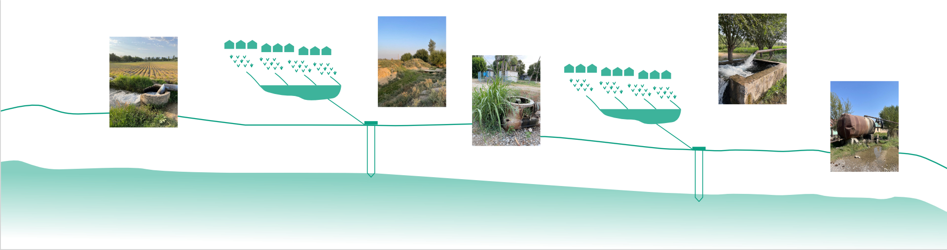 This research project visualises different aspects of water scarcity in the Fergana Valley, challenging simplified understandings of this issue as related only to technical issues or understandings of water as a passive physical substance. We distinguish diverse perspectives of water scarcity by visualising a conceptual model based on ideas of hydrosocial cycle and political ecology of water.